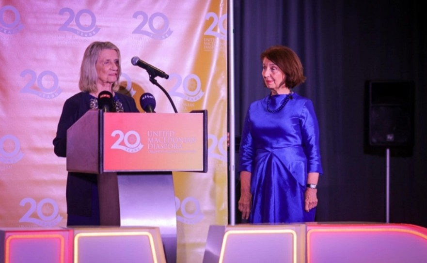 Таа истакна дека има прекрасен живот и на присутните Македонци, кои по повод јубилејот на ОМД и присуството на македонската делегација предводена од претседателката Сиљановска – Давкова пристигнаа од различни делови на Америка, им порача дека треба да бидат со крената глава.