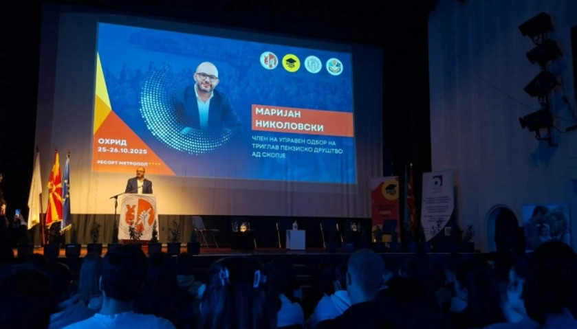 Во вториот дел од конференцијата се обрати Маријан Николовски, член на Управниот одбор на Триглав пензиско друштво АД Скопје и претседател на новоформираната Асоцијација на пензиски друштва во Македонија.