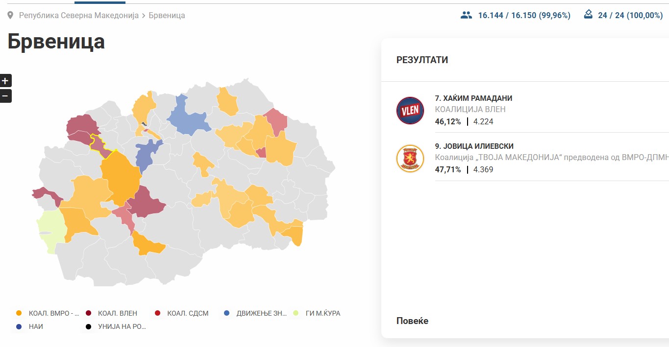Според 100% преброени гласови Илиевски освои 4.369 гласови додека кандидатот на ВЛЕН, Рамадани доби 4.224 гласови