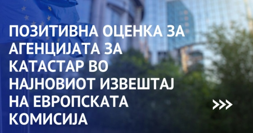 Во најновиот извештај на Европската комисија за напредокот на државата на патот кон Европската Унија, Агенцијата за катастар на недвижности доби високи и позитивни оценки за своето работење.