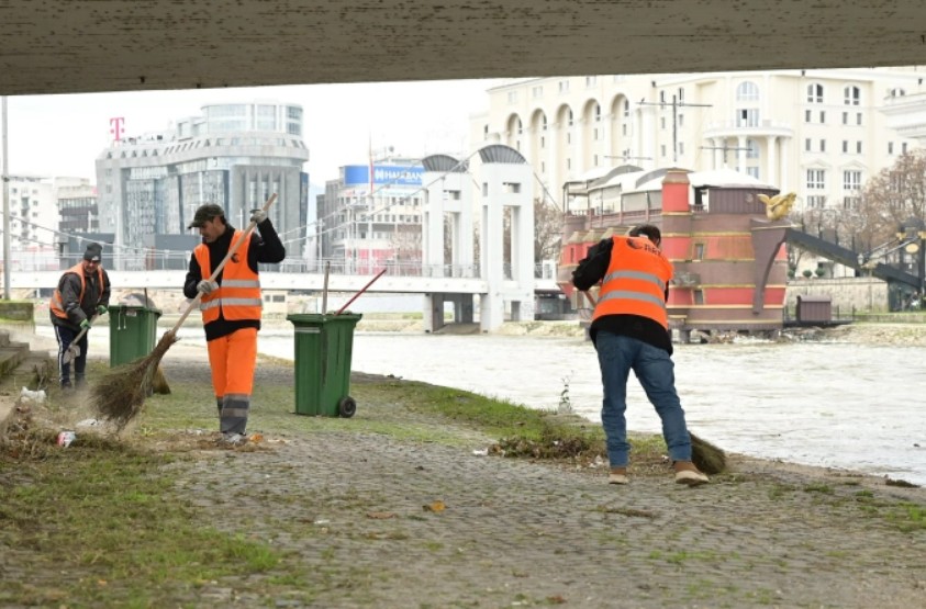 Екипите на јавните претпријатија во Скопје го чистат кејот на реката Вардар, објави на Фејсбук градоначалникот Орце Ѓорѓиевски.