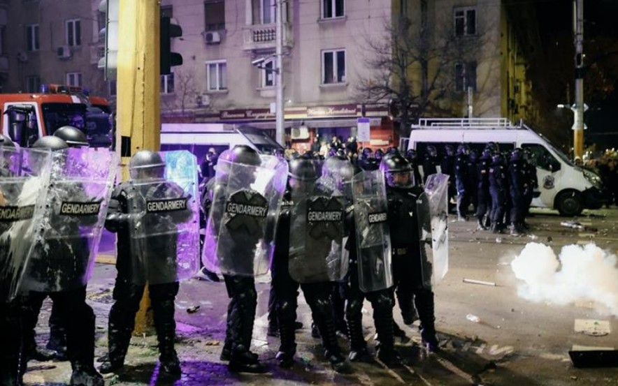 Некои демонстранти се судрија со полицијата, која ги опколи канцелариите на владејачките партии во Софија и фрлале камења, шишиња и петарди кон полицајците.