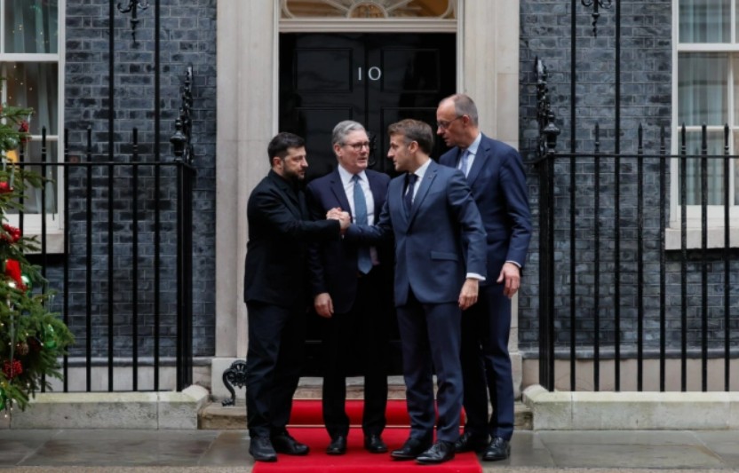Во соопштението на британската влада се наведува дека тројцата европски лидери ги поздравиле напорите за постигнување праведен и траен мир во Украина.