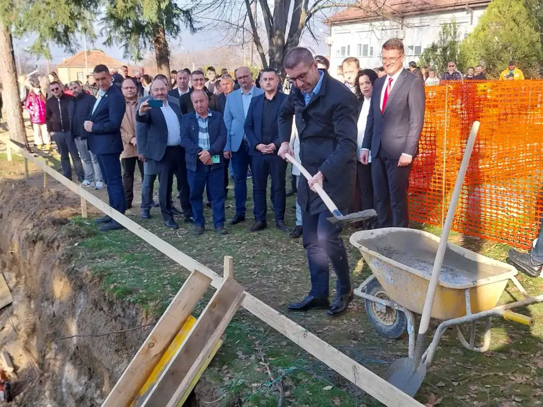 Премиерот Мицкоски и градоначалникот на Ново Село, Божинов, го означија почетокот на изградбата на нова училишна спортска сала во селото Колешино