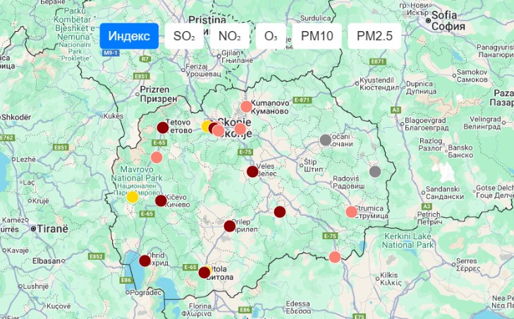 Податоците од сите мониторинг станици како и досега може да се гледаат во реално време. Новитет е тоа што истите се споредуваат со новиот индекс, кој е во согласност со Европскиот индекс за квалитет на воздух кој започна со примена од 04 јули 2025 година.