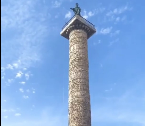 На плоштадот Пјаца колона во Рим, реставратори користат ласерски зраци за да го исчистат мермерниот столб, отстранувајќи ја правта и нечистотијата која со децении го покривала древниот споменик. Споменикот, изграден меѓу 180 и 193 година од новата ера,висок 47 метри прикажува спирални резби со битки водени од римскиот император Марк Аврелиј.
