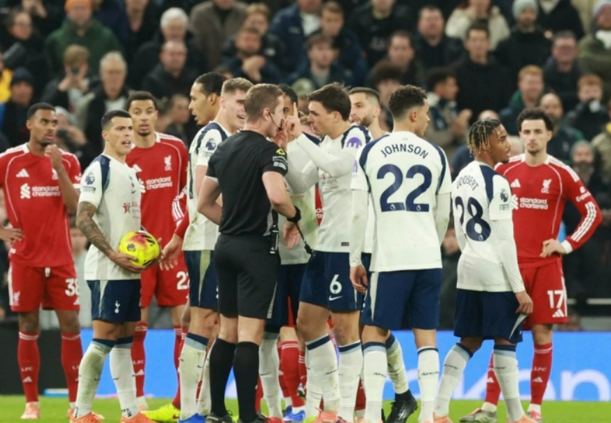 Тотенхем остана со 10 фудбалери во 33. минута откако Чави Симонс доби директен црвен картон по стартот врз дефанзивецот на Ливерпул, Вирџил ван Дајк. Во судиското продолжение, Кристијан Габриел Ромеро доби втор жолт картон за неспортско однесување, а Тотенхем го одигра остатокот од натпреварот со девет играчи.