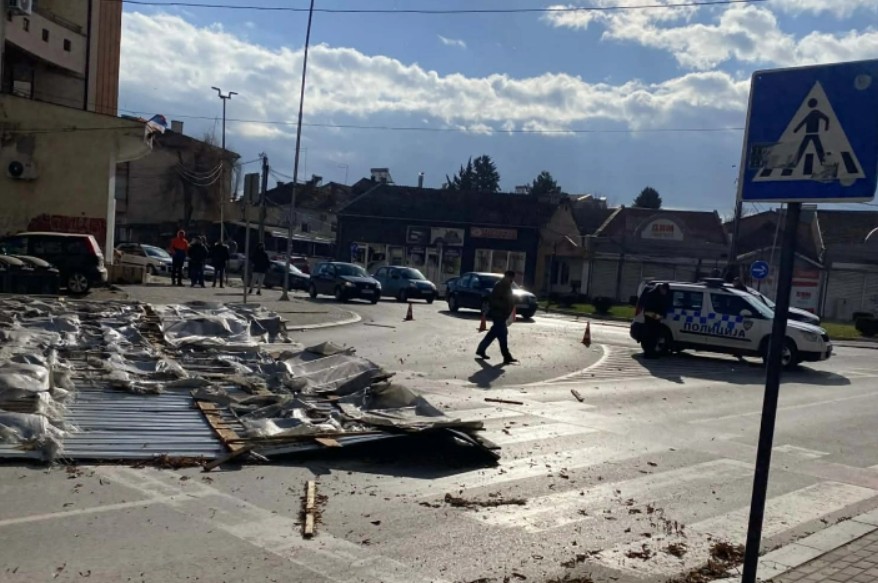 Од силниот ветер, претпладнево падна дел од покрив на улицата „Гоце Делчев“ во Куманово. Покривот падна од зграда, лоцирана во близина на крстосницата на улицата „Гоце Делчев“ и булеварот „Трета Македонска ударна бригада“.
