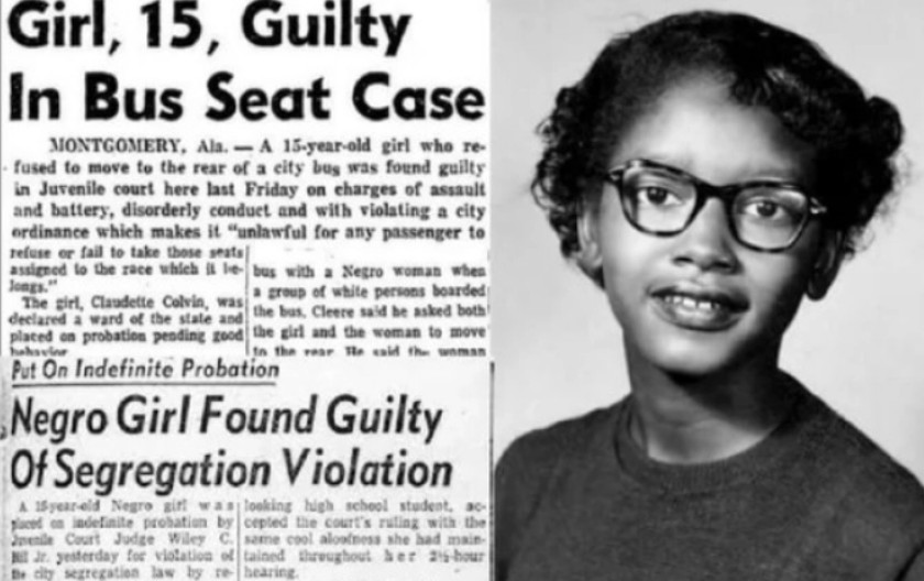 На 2 март 1955 година, тогаш 15-годишната Колвин одбила да го отстапи своето место во автобус во Монтгомери, Алабама, на бела девојка, што било во директна спротивност со тогашните сегрегациски закони. Иако друга црна девојка што била со неа се повлекла, Колвин останала на своето место по што била уапсена. Овој настан се случил девет месеци пред Роза Паркс да го направи истото на 1 декември 1955 година, чин што историски се смета за катализатор на движењето за граѓански права.