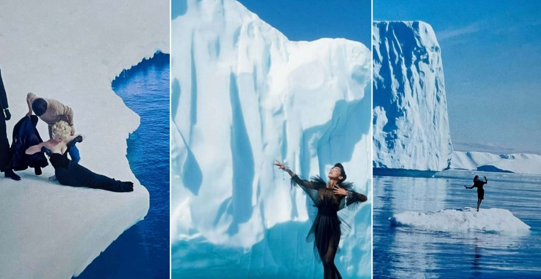 И, така беше создадена една од најпознатите слики во историјата на модата: Клод стои на нестабилен леден брег сред Арктикот. Околу неа нема ништо освен мраз, небо и вода. Без јажиња, без безбедносни мрежи, без дигитални трикови. Само жена, бездна и висока мода.