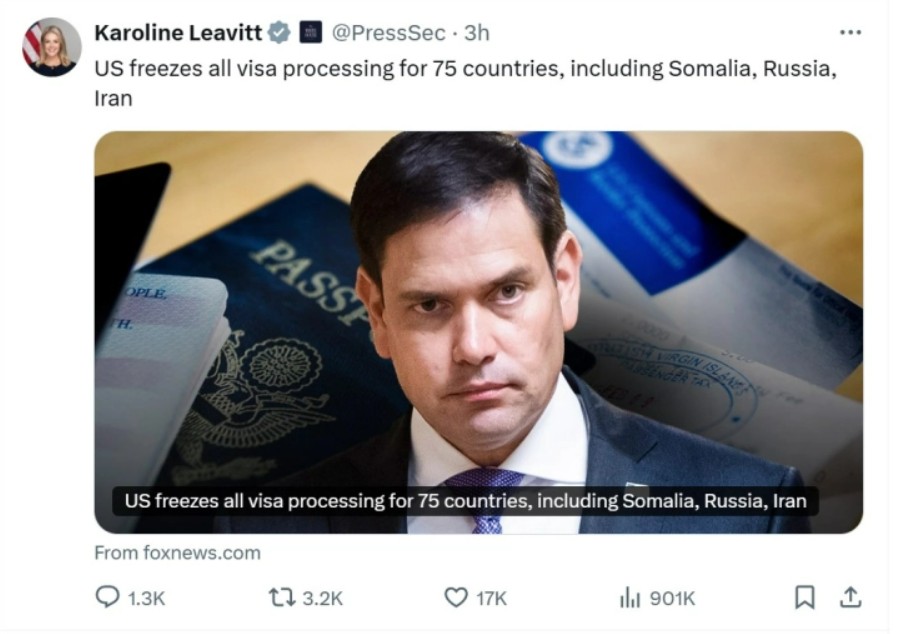 САД ја паузираат обработката на иселенички визи за 75 земји, јави и ДПА.