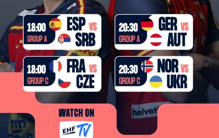 Првиот ден на ЕХФ Еуро 2026 ќе биде комплетиран вечерва со дуелите меѓу Норвешка – Украина и Германија – Австрија.