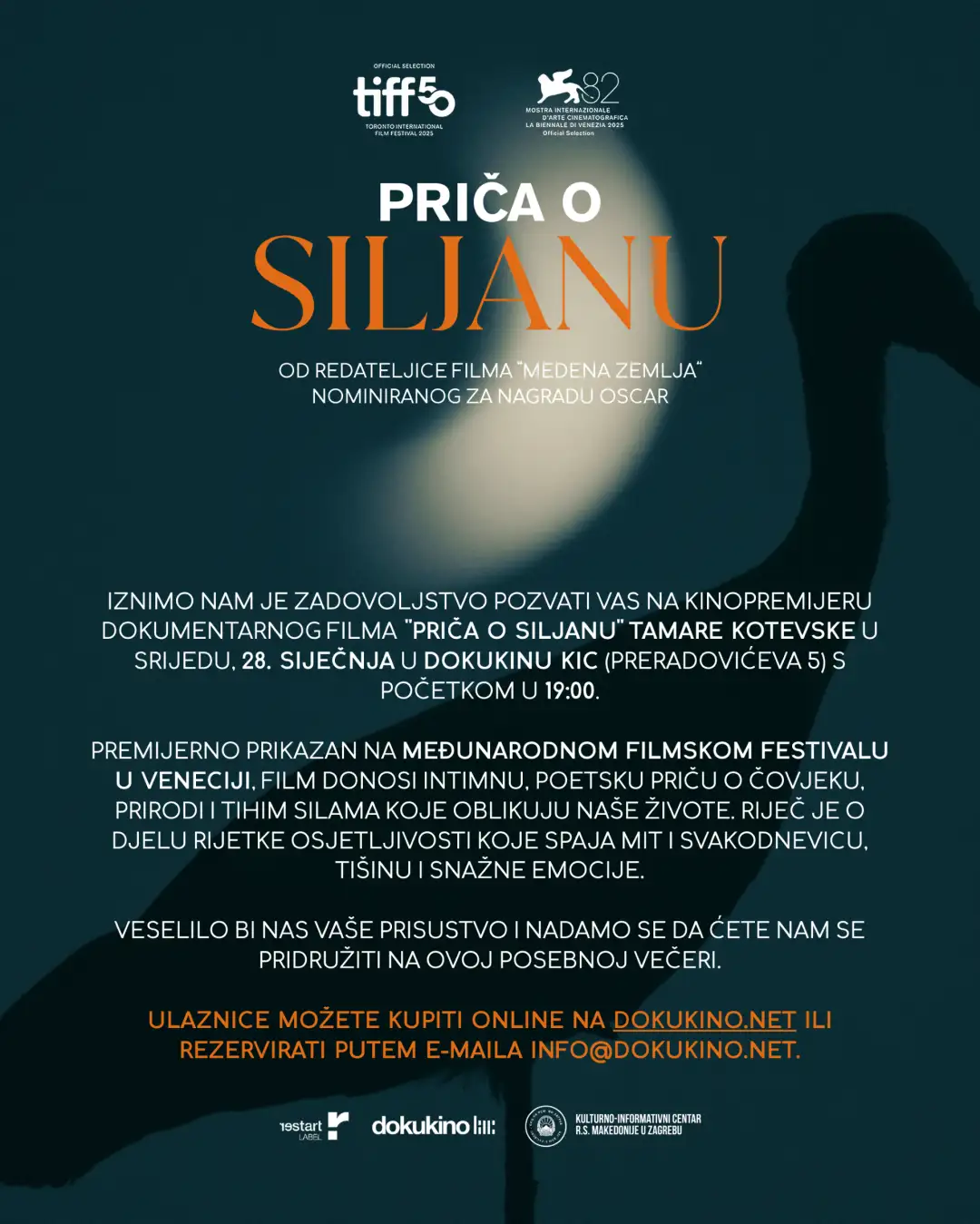 На покана на хрватскиот дистрибутер, македонскиот КИЦ во Загреб се јавува како еден од партнерите на кино-премиерата и дистрибуцијата во Хрватска на македонскиот документарен филм, „Приказната за Силјан“ на Тамара Котевска кој што својата премиера ја имаше на престижниот Меѓународен филмски фестивал во Венеција.