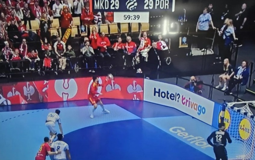 Португалија го имаше последниот напад при резултат 29:29. Нам ни треба победа, а резултатот е нерешен и топката е во рацтете на противникот. Португалците шутираа од левата страна, Томовски одбрани, но топката повторно дојде во рацете на Португалците. Немавме среќа. Има уште половина минута, а босанските судии толерираат долги напад на Португалија.