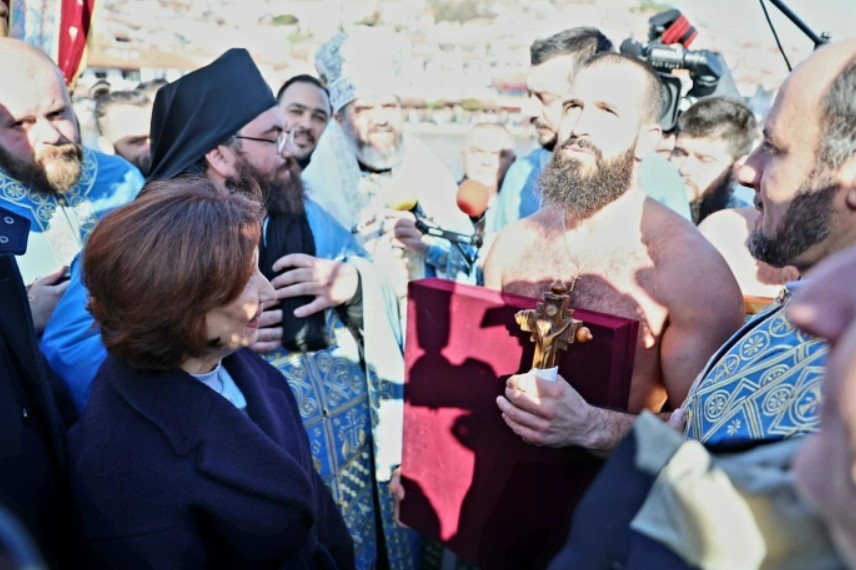 Претседателката Гордана Сиљановска-Давкова беше дел од свеченото одбележување на големиот христијански празник Богојавление – Водици во Охрид и Струга, каде што митрополитот Дебарско-кичевски г. Георгиј ги освети водите на Охридското Езеро и реката Црн Дрим, положувајќи го светиот крст во нив.