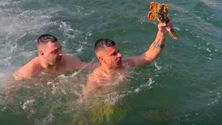 И годинава Васко Дрвошанов од селото Куклиш го фати положениот крст во осветените води на базенот „Аквариус“ во Струмица. Во водата скокнаа 16 граѓани, а најбрз беше Дрвошанов.