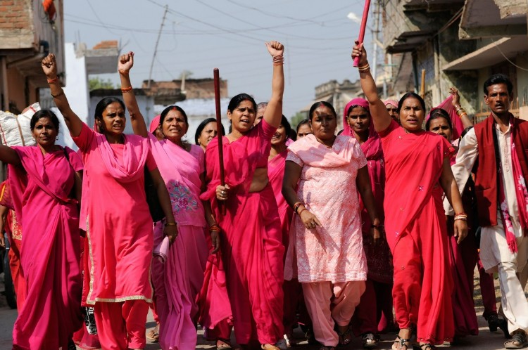 Во Утар Прадеш, Индија: Розовите сарии и бамбусови стапови го штитат женското достоинство