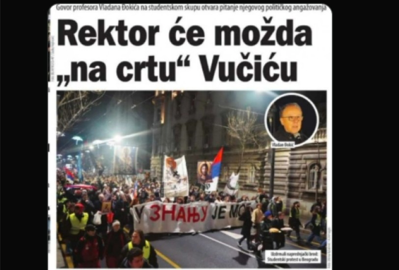 „Владан Ѓокиќ има амбиции да стане претседател на Србија или премиер на Србија. Можно е да има амбиции да стане кошаркарски тренер за деца… Велат дека го интересира политиката, а, повеќе од очигледно, во принцип, не го интересира образованието на младите. И сега кога тоа јавно го објавија медиумите на тајкуните-блокатори – кога ректорот Ѓокиќ ќе поднесе оставка од ректорската позиција? Прво, тој не треба да го злоупотребува државниот универзитет, кој го плаќаат сите граѓани на Србија, заради своите политички амбиции“.