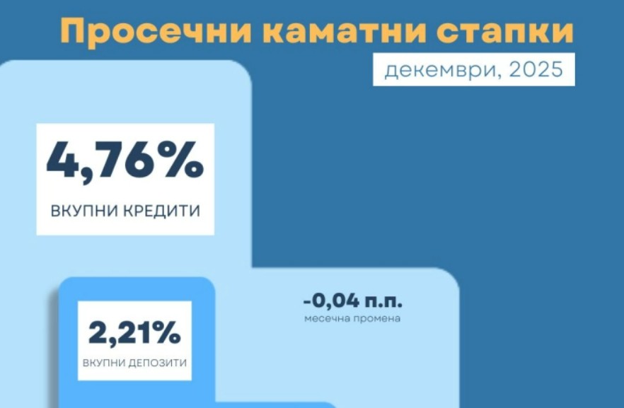Раст на просечната каматна стапка кај депозитите во декември, пад кај кредитите