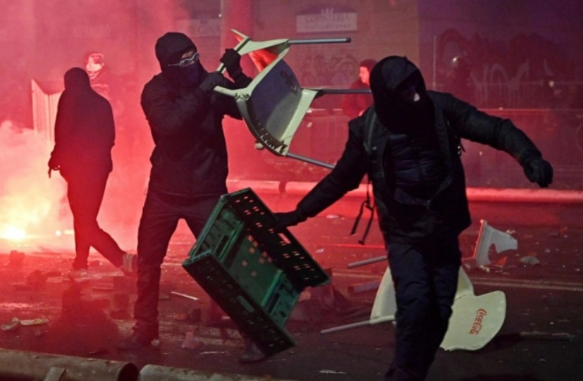 За време на протестите дојде до сериозни нереди, при што толпата фрлаше камења, молотови коктели и други предмети кон полицијата. Запалени беа неколку канти за отпад, како и едно полициско комбе.