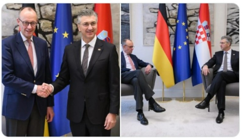 Хрватскиот премиер Андреј Пленковиќ и германскиот канцелар Фридрих Мерц денеска во Загреб разговараа за проширувањето на Европската Унија, при што Пленковиќ истакна дека земјите од Југоисточна Европа не смеат да бидат запоставени ниту изложени на влијанието на „други глобални актери“.