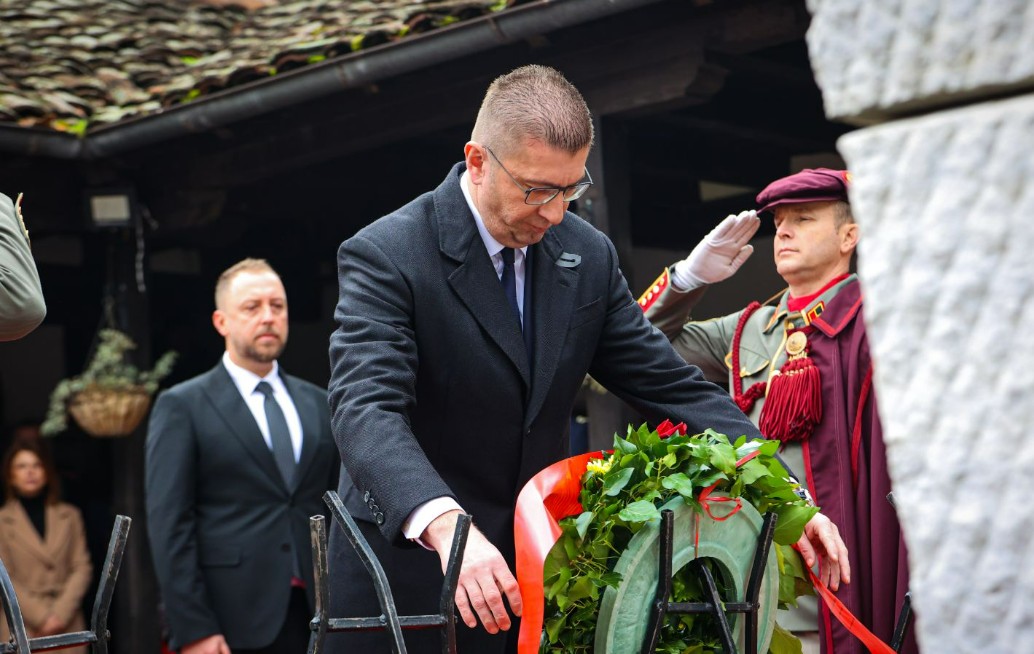 Премиерот Христијан Мицкоски денеска положи цвеќе во дворот на црквата „Свети Спас“ во Скопје, каде беше централното чествување по повод 154 години од раѓањето на македонскиот револуционер Гоце Делчев. Порача уште еднаш да се потсетиме на неговиот лик и дело, да го чествуваме, да се сеќаваме и тоа, како што рече, нека ни биде пример како понатаму треба да ја градиме нашата заедничка татковина Македонија.