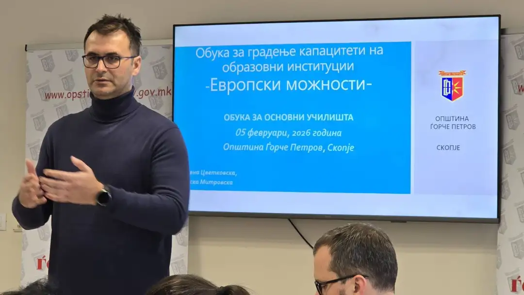 Општина Ѓорче Петров организираше обука за градење и зајакнување на капацитетите на градинките и основните училишта од општината, насочена кон унапредување на образовниот процес, институционалната соработка и искористување на можностите за развој преку меѓународни и меѓуинституционални проекти, вклучително и претпристапните фондови на Европската Унија.