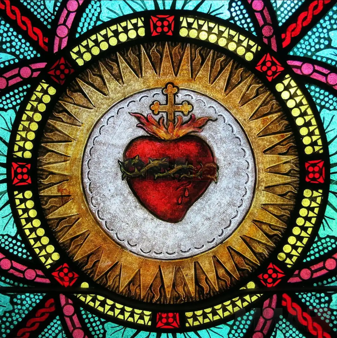 Католичката црква ја посочува Света Маргарет Мари Алакок и нејзиниот приказ на „Светото срце на Исус“ од 1673 година, како прво „срце на љубовта“, но тоа тврдење, се чини, не важи, оти тој идеограм веќе бил во употреба од претходно. Сепак, честите прикази на оваа срцето и во црковни содржини, неспорно, помогнале во неговото распространување во европската култура.