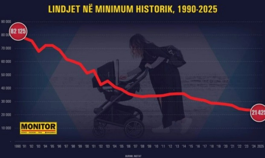 Податоците на Институтот за статстика – ИНСТАТ, покажуваат дека „белата чума“ и понатаму коси во Албанија, што се потврдува со фактот дека минатата година се родени 21.425 бебиња, што е за 1885 или 8,1 отсто помалку отколку во 2024 година.