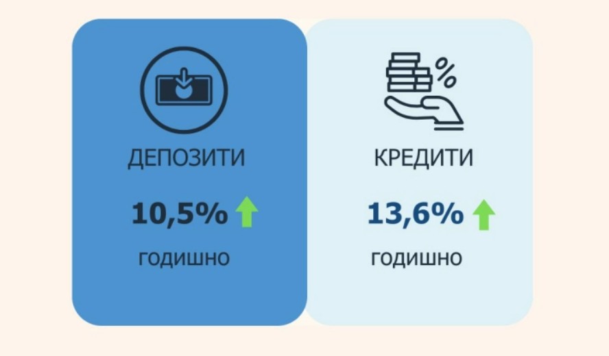 Вкупните депозити со годишен раст од 10,5 отсто, а кредитите од 13,6 проценти