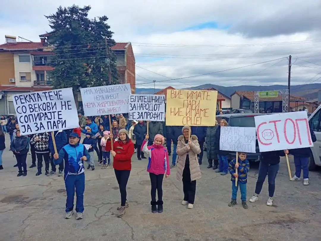 Протестот под слоганот „Живот даваме Блатешница НЕ, а со повеќе пароли испишани на транспаренти кои ги носеа жителите , а во рамките на трката се одржа денеска  во центарот на Блатец , а го организира Месната заедница на Блатец поддржани од организаторите на трката Здружението за планински спортови „Чупино Треил“.