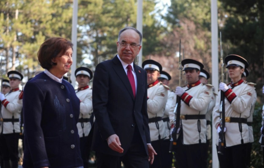 Претседателката Гордана Сиљановска-Давкова денеска со државни и воени почести го пречека претседателот на Албанија Бајрам Бегај, кој е во официјална посета на Македонија.