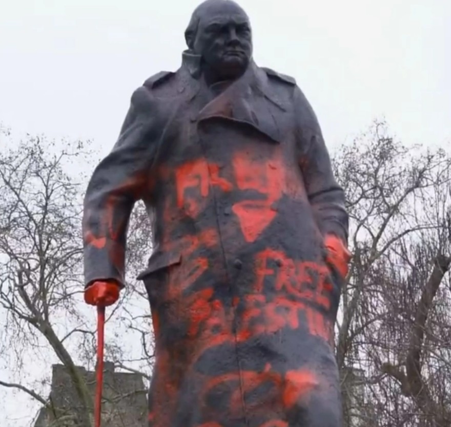 Со осквернувањето на статуата на британски херој, кој ја водеше земјата во борбата против нацистите, сторителот пронајде перверзен начин да ја комбинира омразата кон Евреите со презирот кон Британија, соопшти советот.