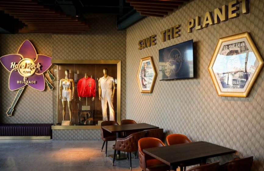 Оригинални корсети на Мадона и Витни Хјустон, невообичаени сценски чизми на Елтон Џон и инструменти на „Блек Сабат“ и други познати музичари се изложени во таканаречениот „музеј“ во рамки на новото „Хардрок-кафе“ во Белград што се најавува како идното место за средба на обожавателите со нивните музички идоли од светската сцена.