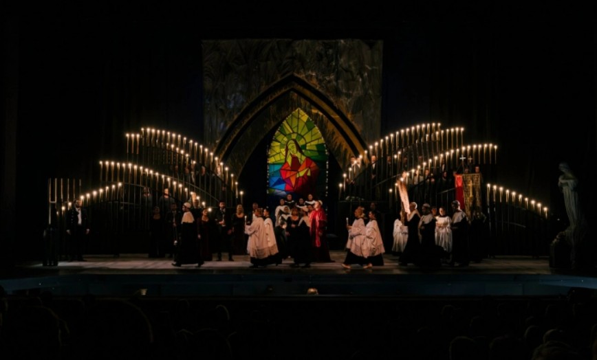 На сцената на Националната опера и балет вечер од 19.30 часот ќе биде изведена операта во три чина „Тоска“ од Џакомо Пучини, во режија на Огњан Драганов од Бугарија. Диригент е гостинот од Италија, Џанлука Мартиненги, сценографијата е на Зоран Николовски, костимографијата на Марија Пупучевска.
