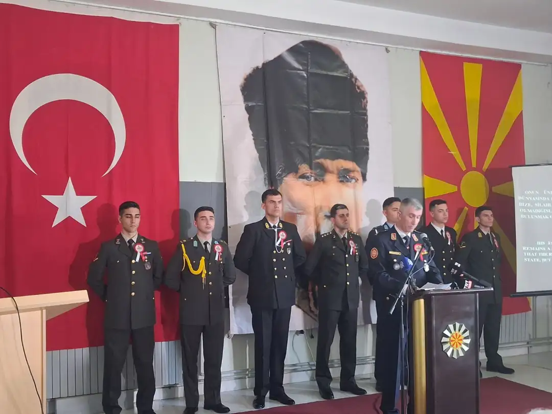 -За нас како воени професионалци Ататурк претставува траен пример за стратешко размислување, одлучност и одговорност кон државата. Неговото лидерство и денес претставува лекција за секој офицер и командант. Неговата мисла „Мир во татковината, мир во светот“ останува силна порака и во денешниот свет. Таа потсетува дека улогата на вооружените сили не е само да ја бранат државата, туку и да придонесуваат за стабилност, безбедност и мир. Република Македонија и Република Турција имаат искрено и цврсто партнерство. Во областа на одбраната оваа соработка е особено значајна и се остварува преку воена едукација, заеднички обуки, модернизација и размена на искуства. Турција е важен партнер во развојот на нашата армија и во унапредувањето на нејзините способности во согласност со НАТО стандардите. Денешното одбележување не е само потсетување на историјата, тоа е и потврда дека вредностите на лидерството, образованието, дисциплината и служба кон татковината остануваат темел на секоја силна држава, истакна Нуредини.