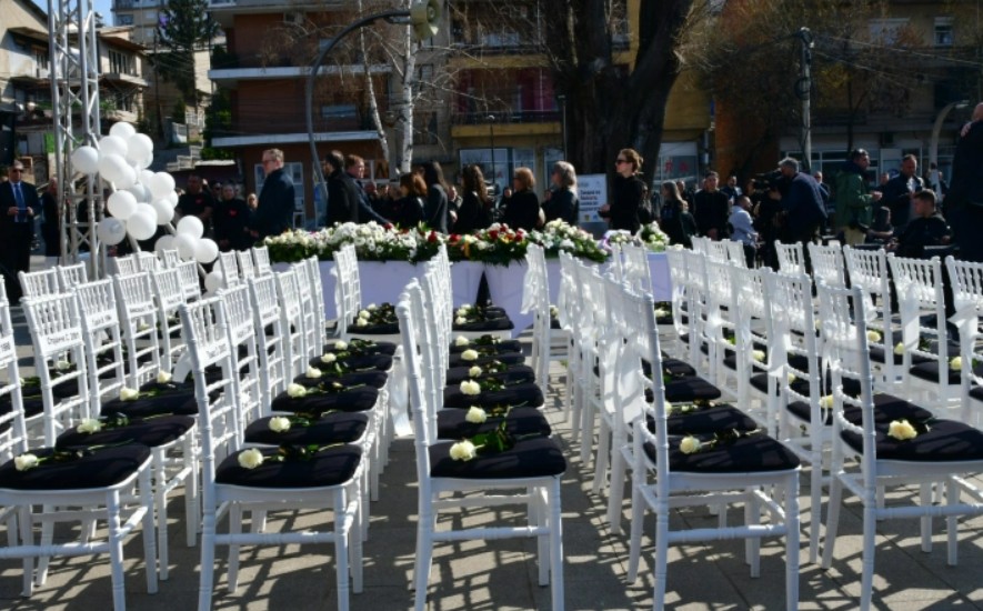 – 63 бели столчиња, 63 имиња, 63 животи што недостигаат – секое столче ја носи тишината на едно отсутно присуство, бела роза за спомен, светлина за сеќавање и место што никогаш нема да биде исполнето – беше пораката со која многуте делегации ги пречекаа семејствата на загинатите и другите пред Домот на културата во Кочани.