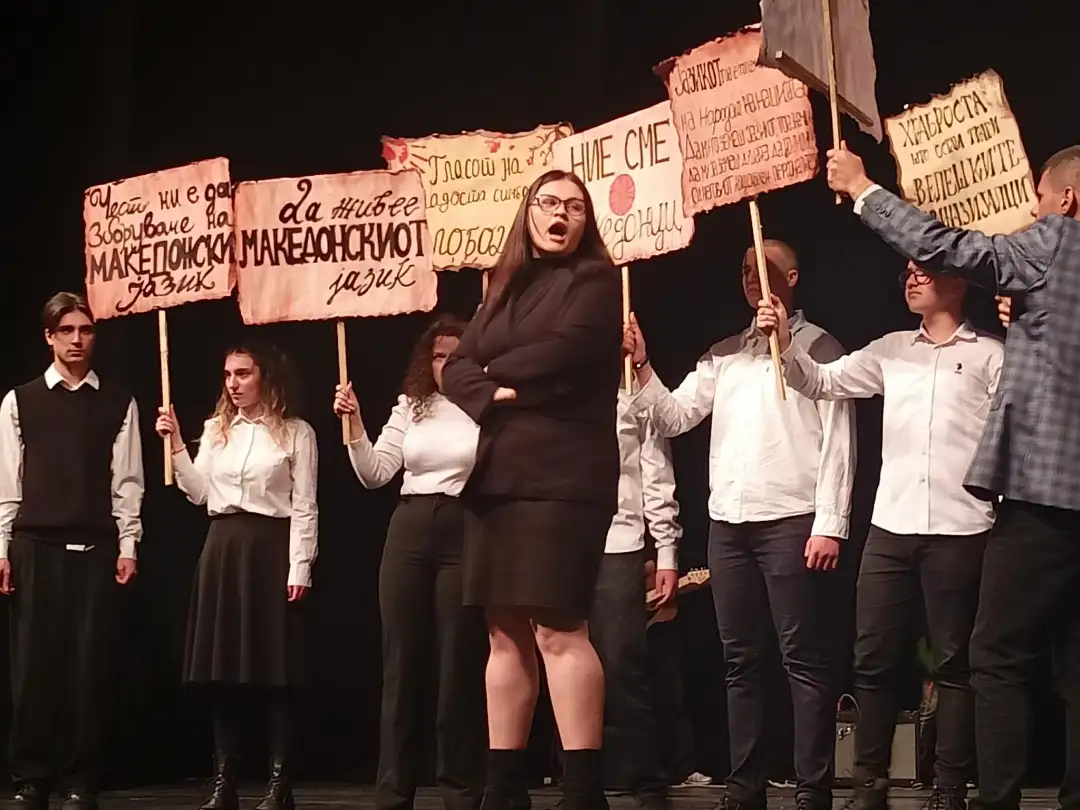 Воедно учениците со оваа програма синоќа и публиката во преполната сала на Театарот со едноминутно молчење им оддадоа почит на трагично загинатите млади, нивни врсници, во Кочанската трагедија во дискотеката „Пулс“ од 16 март 2025 година.