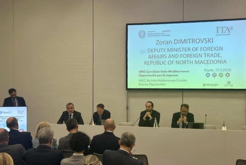 За Северна Македонија, како земја со ограничени домашни извори и висока увозна зависност, енергетската поврзаност и регионалната соработка се клучни предуслови за економска стабилност и долгорочен развој, а во таа насока се напорите на Владата за зголемување на инвестициите во енергетскиот сектор – истакна заменик-министерот за надворешни работи и надворешна трговија Зоран Димитровски на панел-дискусијата посветена на енергетиката во рамките на меѓународниот форум „Развој на перспективите на Индо‑Медитеранот преку Коридорот Индија – Блискиот Исток – Европа (IMEC)“, што се одржа во Трст.