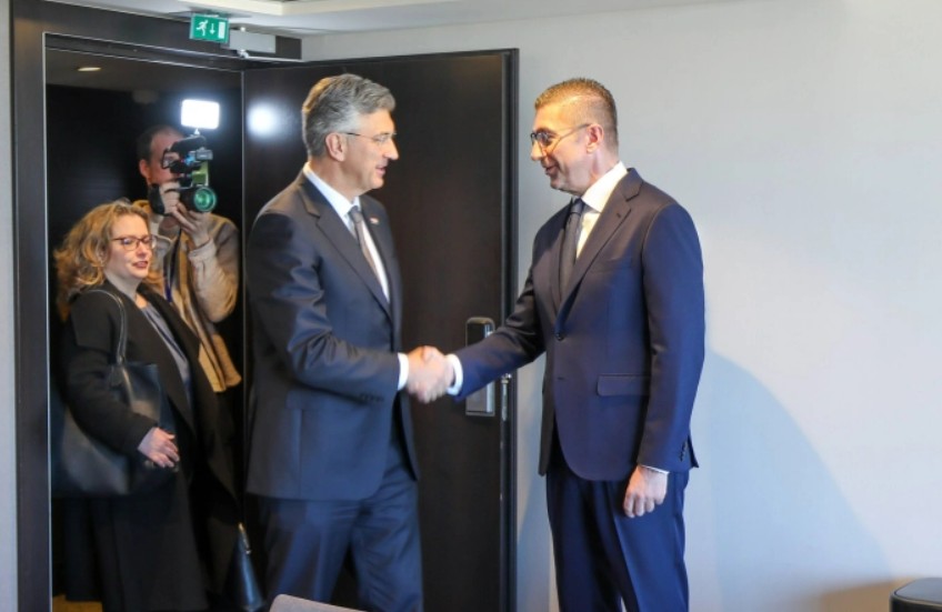 Премиерот Христијан Мицкоски, во рамки на посетата на Брисел, на маргините на Конгресот на Европската народна партија остварил средба со хрватскиот колега, Андреј Пленковиќ.