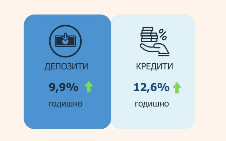 Анализирано на годишно ниво, вкупните депозити бележат раст од 9,9%, поради повисоките депозити на двата сектора, со поголем придонес на депозитите на секторот „домаќинства“.