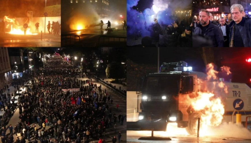 Повеќе од три часа, поддржувачите на Демократската партија, предводени од Бериша, и десничарските пратеници, протестираа во Тирана, предизвикувајќи материјална штета на објекти, запалија полициско возило, контејнери за отпад, а оштетиле и витрини на неколку трговски и други објекти.