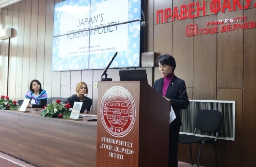 Амбасадорката на Јапонија, Сецуко Кавахара, денеска беше во посета на Универзитетот „Гоце Делчев“ (УГД)– Штип, каде одржа предавање на Правниот факултет.