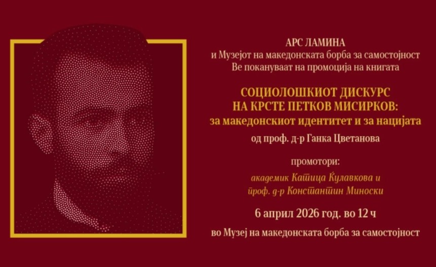 На 6 април промоција на новата книга на проф. д-р Ганка Цветанова – „Социолошкиот дискурс на Крсте Петков Мисирков: за македонскиот идентитет и нацијата“