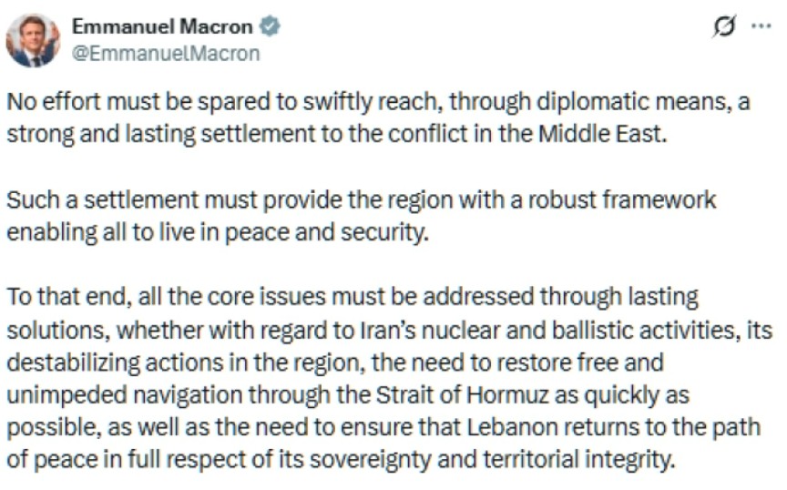 Францускиот претседател Емануел Макрон во најава на платформата X изјави дека земјата ќе организира конференција со Велика Британија и други држави за создавање мултинационална мисија за враќање на пловидбата во тој дел од светот.