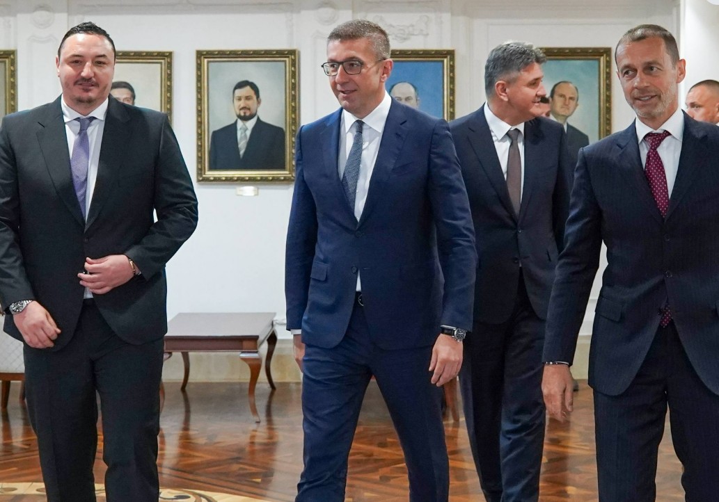 Премиерот Христијан Мицкоски денеска остварил средба со претседателот на УЕФА, Александар Чеферин, на која станало збор за визијата, развојот и за перспективите на фудбалот.