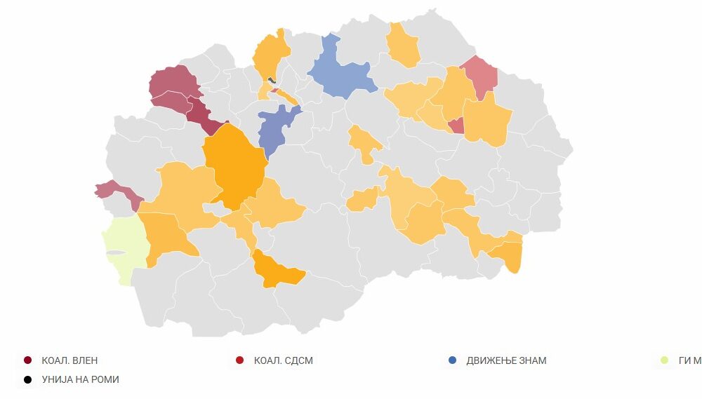 Според првичните резултати објавени од Државната изборна комисија (ДИК), по преброени 69,17% од гласовите, кандидатите на ВМРО-ДПМНЕ водат во 21 општини. Коалицијата ВРЕДИ (ВЛЕН) во четири,...