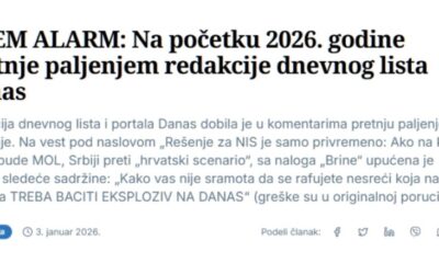 Асоцијацијата на српските независни електронски медиуми (АНЕМ) денеска објави дека редакцијата на дневниот весник „Данас“ добила закана со смрт во коментарите за веста за решението за...