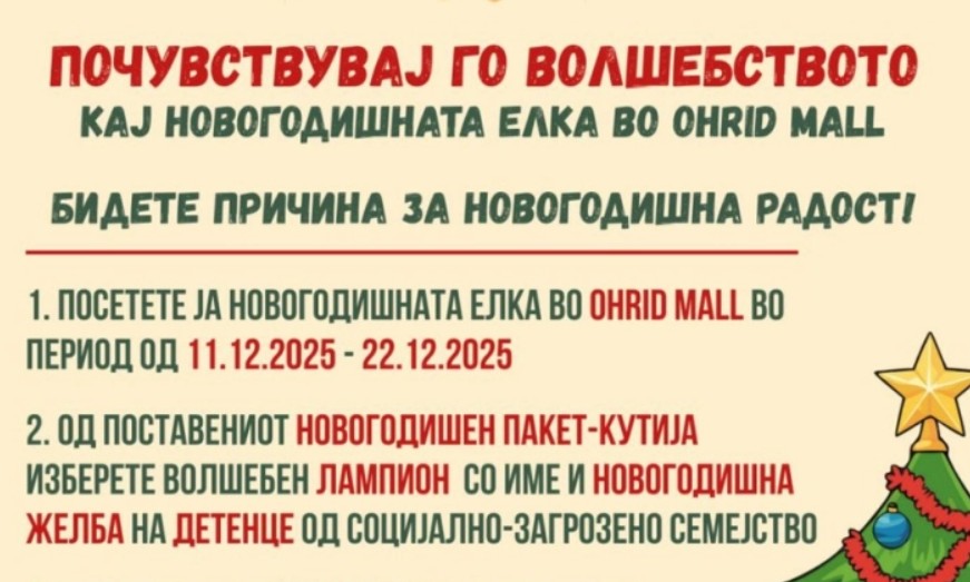 Општинската организација на Црвениот Крст од Охрид и оваа година ќе ја спроведе новогодишната хуманитарна акција „Волшебна елка“ наменета за децата од социјално загрозените семејства. Во...