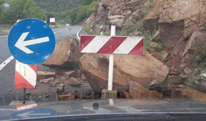 Екипа од ЈП „Македонија пат “ Подружница Велес е на терен и работи на расчистување на поголем одрон од карпа која падна денеска околу пладне на...